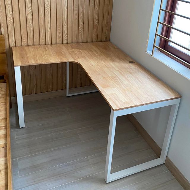 bàn làm việc góc L 140x120cm mặt gỗ chân sắt lắp ráp với chất liệu mặt bàn từ gỗ cao su ghép tiêu chuẩn AA dày 17mm PU màu sắc đẹp kết hợp với khung chân sắt lắp ráp ngàm sơn tĩnh điện chắc chắn. Mặt bàn liền tấm được CNC bo góc đẹp mắt, bên cạnh đó Bàn góc L CD68016 còn giúp bạn tiết kiệm diện tích, phù hợp với những không gian nhỏ hẹp. Góc chữ L có thể tùy biến các bên đều được.