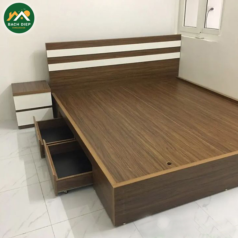 MDF có cấu trúc đồng nhất, giúp giường chịu lực tốt và ít bị cong vênh do thay đổi thời tiết. - Giá thành hợp lý: